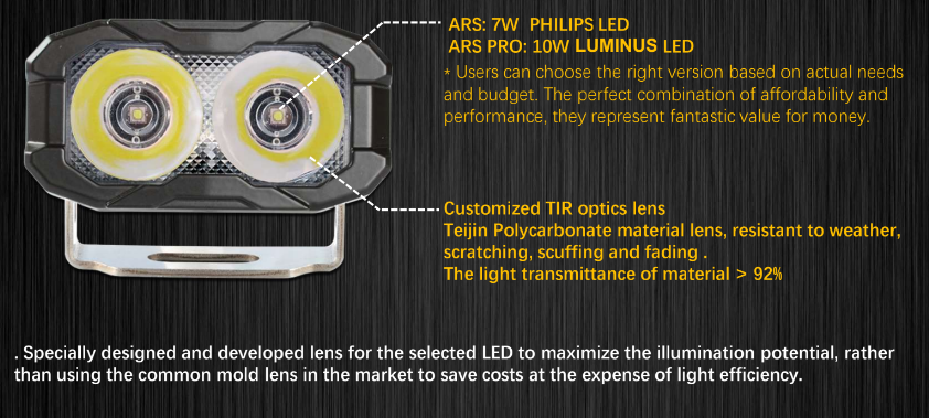 - Equipped with thermal management system that automatically adjusts the brightness output according to the external temperatures